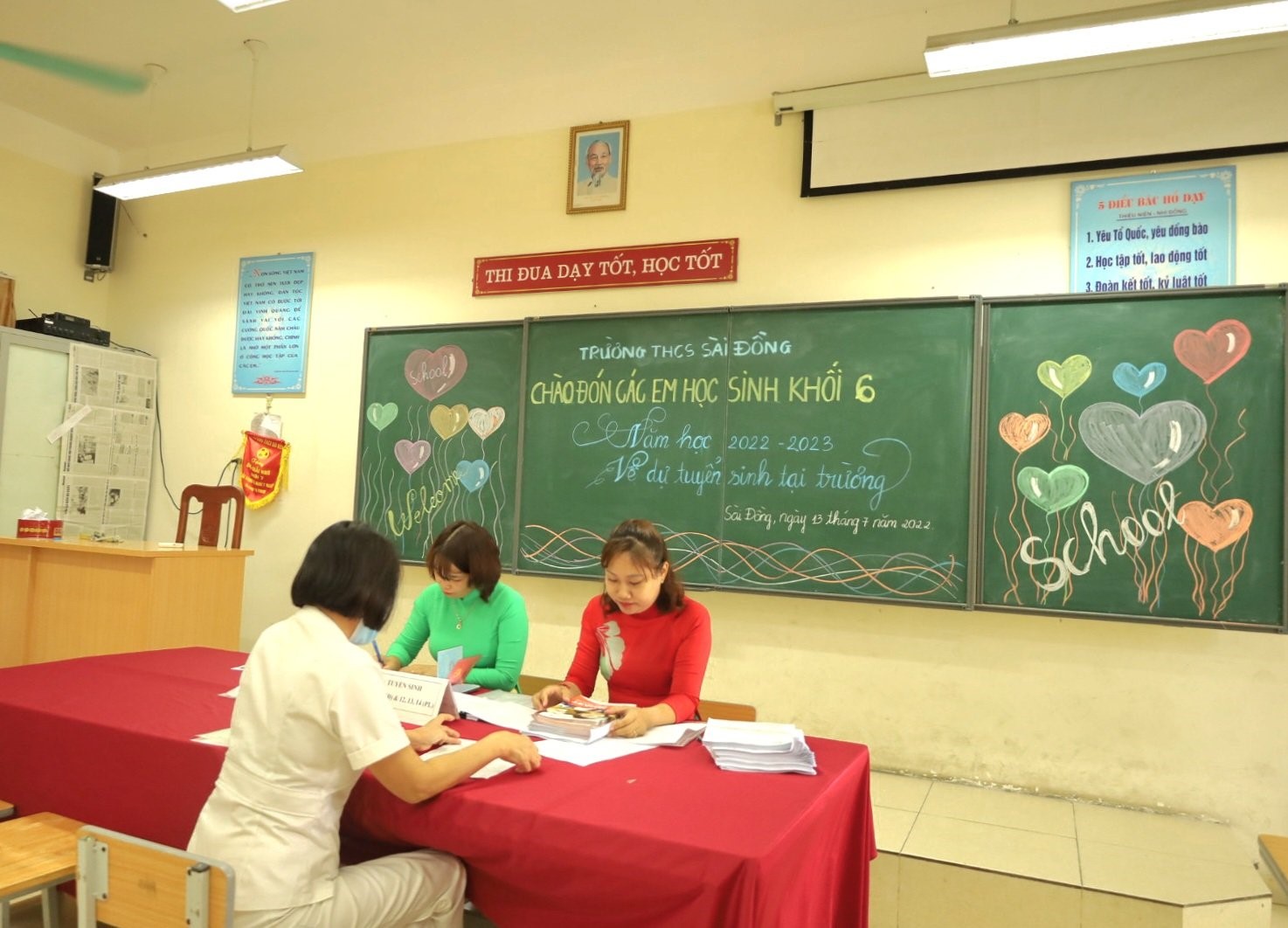 Từ ngày 13/7/2022 đến ngày 18/7/2022 , nhà trường sẽ tuyển sinh trực tiếp. Ban tuyển sinh trường THCS Sài Đồng vui mừng chào đón Quý phụ huynh và các em học sinh đến trường để nộp hồ sơ vào lớp 6. Nhà trường sẵn sàng hỗ trợ và giải đáp các thắc mắc nếu phụ huynh có nhu cầu.
